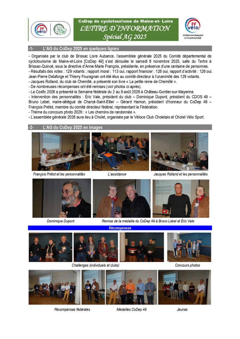 clubs du Comité Départemental de Cyclotourisme du Maine et Loire dont la présidente AM François était excusée et représentée par JY Lattay et MJ Pignon .