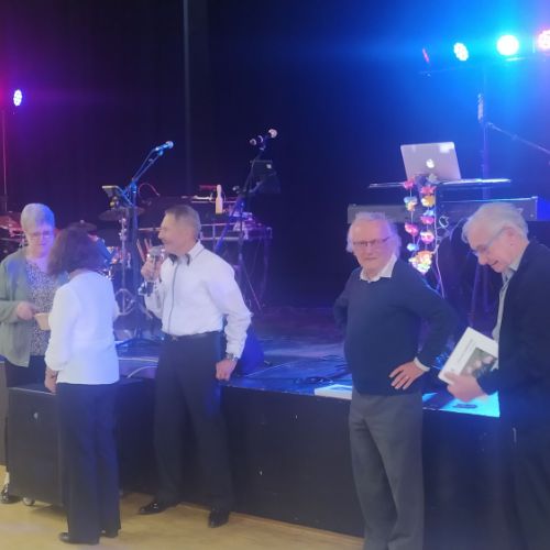 Lionel Delahaie , Mr festivité , n’a pas tardé à retenir Jean-Luc VIVANIS et ses musiciens puis après sollicitation , le club des Cyclos du Lys et son président Bernard Bossard se sont mobilisés pour organiser cette soirée dansante dans la salle des fêtes de Vihiers ; Loulou Godet le traiteur local était chargé de cuisiner la choucroute .