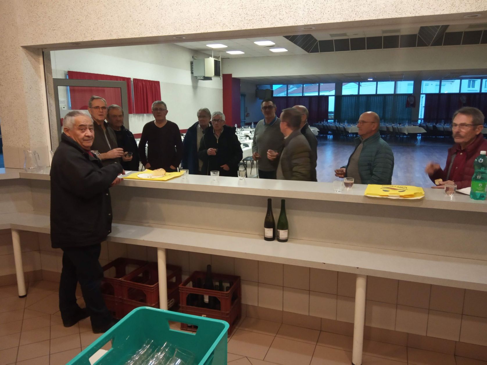 Dés 16 h une quinzaine de bénévoles se répartissent les taches pour recevoir au mieux tous les convives et vers 19 h 30 la salle s’active petit à petit , on papote , on trinque , on s’installe et à 21 h les premières notes de musique égaient les convives vite rassasier par les plateaux de choucroute appétissante …