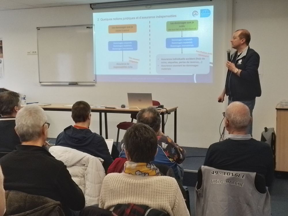 Sur les 45 clubs du CODEP 49 que préside Anne-Marie François , 20 étaient présents (33 délégués sécurité ou responsables de clubs) qui sont restés attentifs et réceptifs aux informations relatives à la sécurité et au comportement des cyclos sur les routes qui sont leur terrain de jeu et qu’ils doivent partager dans le respect et avec courtoisie avec les autres usagers de la route et faire en sorte que les sorties touristiques bihebdomadaires pour bon nombre des 2000 licencié.e.s se terminent bien .